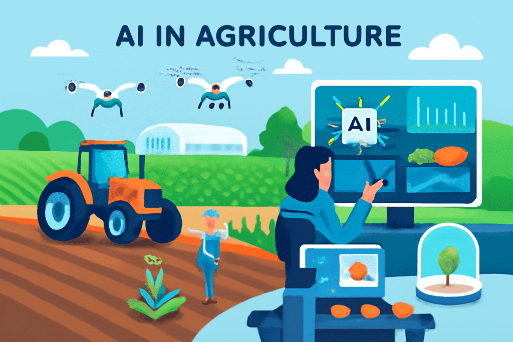 AI in agriculture uses smart tools to improve farming and food production. It analyzes data to optimize crops, predict weather, or automate tasks.