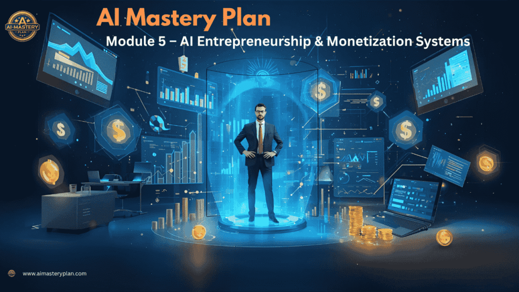 Once completed, proceed to Module 6: AI Data, Analytics & Decision Systems — where you’ll learn how to use AI for smart business insights and strategy.