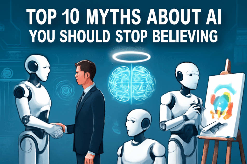 Have you heard wild stories about AI? Like robots taking over the world or AI reading your mind? Many people believe these tales. But most are just myths. In 2025, AI shapes our lives more than ever. Yet, misconceptions hold us back. This article debunks the top 10 AI myths. You’ll get clear facts and tips. Whether you’re a learner, pro, or fan, these insights help you see AI’s real power. Let’s clear the air.